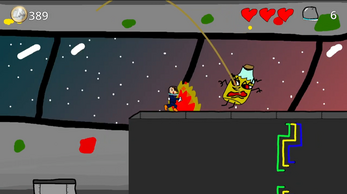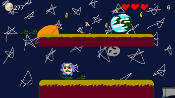 "Lard's Adventure" is a 2D space-themed platformer where you fly across 3 different planets and fight off ugly monsters to save the universe! Travel through 3 exciting levels; "Green Green Greens," "Hot Grass," and "The Synthetic Planet" which is home to the evil ruler of the universe, The Great Gumbo!